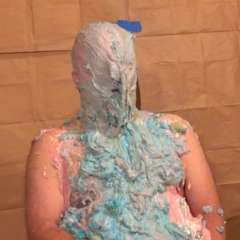 Chrissylecreme was surprised by phantazia with a big sloppy cream pie to the face