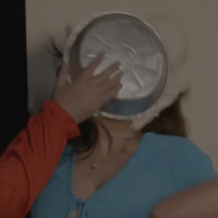 Gungemanc was surprised by Mattey with a big sloppy cream pie to the face